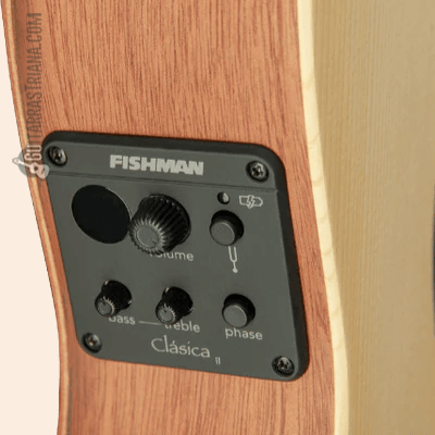 Está electrificada mediante el previo Fishman Clásica II. Fishman es sin duda, la mejor opción para los que quieren una sonido natural al enchufar la guitarra.