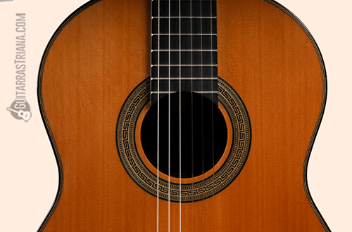 Profundizando en los componentes de la guitarra encontramos caoba en los aros y el fondo, madera muy usada en este tipo de guitarras y con la que se consigue un sonido potente y cálido. En cuanto al mango, se fabrica con cedro (con refuerzo de ébano y alma), madera que destaca por su gran dureza y durabilidad.