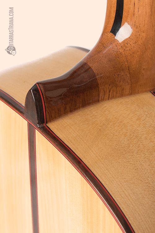 Lo mismo ocurre con el diapasón de ébano, con el mástil de cedro de Honduras y con el puente y los perfiles, de Palosanto. El clavijero solo está disponible en modelo mecánico, pero su calidad es tal que resulta sorprendente. Quienes busquen una guitarra flamenca que les permita exprimir el máximo potencial de su talento, encontrarán en este modelo la respuesta a todas sus necesidades.