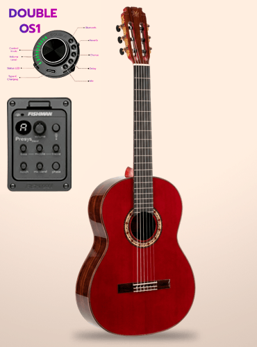 Por otro lado, sus acabados no tienen nada que envidiar a guitarras de gama superior. Cuenta con una triple filetería bicolor que no suele verse en modelos de este precio y una roseta de rosas, que ayuda a que su personalidad flamenca destaque sobre el escenario. Además, se puede pedir electrificada mediante el previo Double OS1 (autoamplificado) o Fishman Presys Blend.