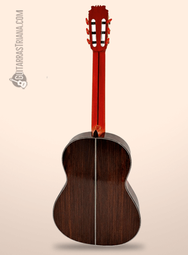 Para su construcción, y como viene siendo habitual en esta gran guitarrería, se han empleado maderas nobles con décadas de secado natural. Este secado proporciona una vibración muy alta, permitiendo una sonoridad potente, rápida respuesta y toda la magia del flamenco. Su tapa, está fabricada con pino abeto macizo de 1ª calidad, mientras que los aros/fondo son de palosanto de India.